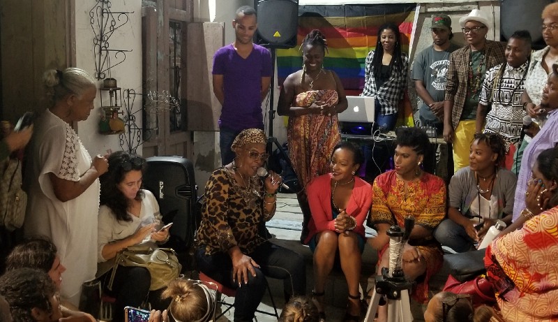 Argelia Fellove, habló del reto que ha significado emprender el proyecto Afrodiverso justo en el corazón de un barrio habanero casi rural como Párraga, donde existe mucha homofobia, fundamentalismo religioso y le han colgado “todas esas etiquetas que le ponen a uno” cuando trabaja desde un pensamiento crítico y coherente con el contexto que vive el país.