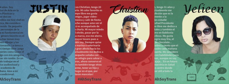 Rostros como el de Noah, Mel, Carlo, Christian, Yenny y Camila han ayudado también a construir referentes, algo que Verde valora muchísimo pues como él mismo cuenta, “si no hubiera asistido a la exposición de fotos de Liam Duran en una de las Jornadas contra la Homofobia y la Transfobia, jamás hubiera sabido de la posibilidad de hacer en Cuba el proceso de reasignación de género”.