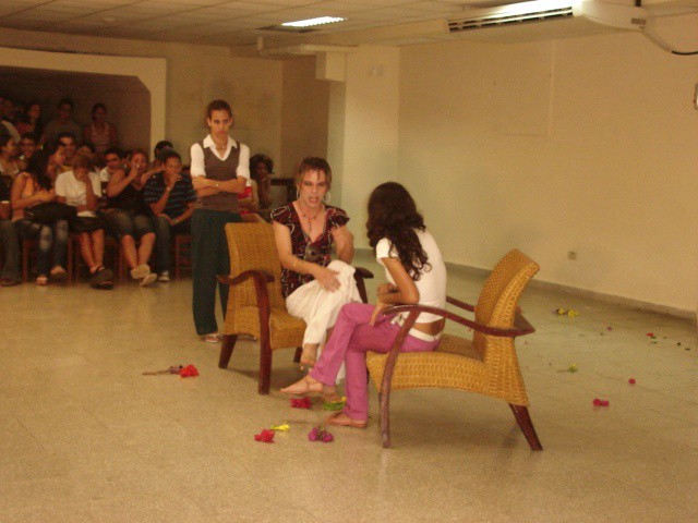 Durante una de las Jornadas por la Lucha Contra la Homofobia, una representación del CENESEX, incluida su directora Mariela Castro Espín, visitó la UCI, y entre las actividades planificadas, para amenizar la visita, estaba la presentación de la obra.