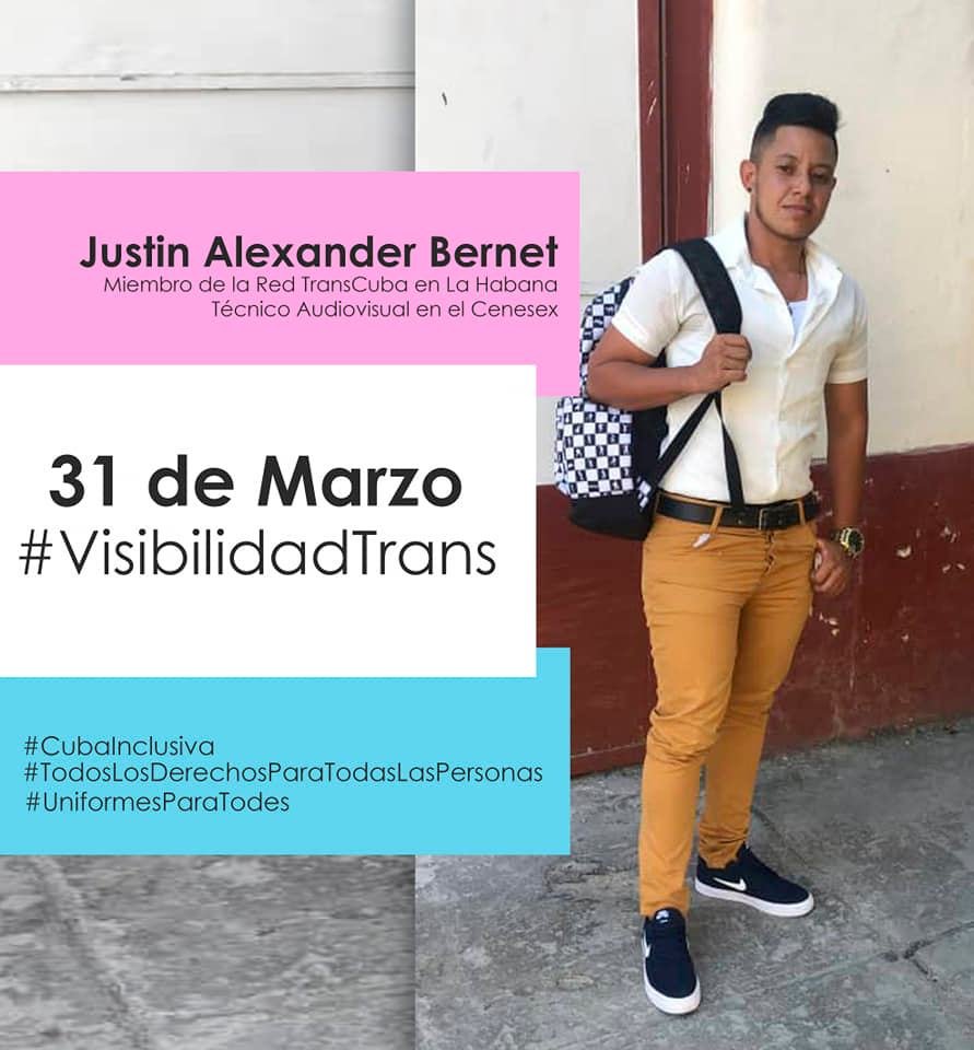 Aprovecho este mensaje para extender mi apoyo a todas las personas trans que se sienten frustradas, deprimidas, e impedidas de desarrollar libremente su personalidad; asimismo exhorto a las familias cubanas a que apoyen, acepten, amen y respeten a sus hijes sin importar cuánto subviertan con su imagen el binarismo hombre-mujer o los significados de una prenda.